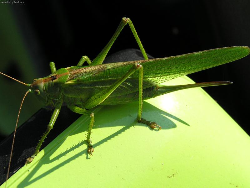Saranče-Při odjezdu z dovolené, si náz drzá obluda sedla na zrcátko auta.