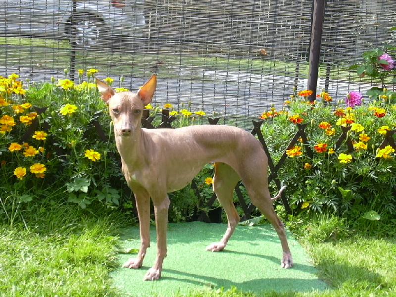 Dorita Ina Mesicni kvetina 2005-Stojici pes v pozadi kvetiny